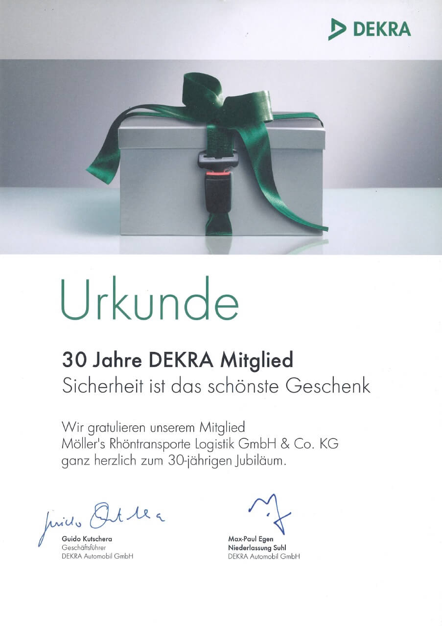 Seit 30 Jahren sind wir Mitglied bei der DEKRA – und darauf sind wir stolz. Die langjährige Partnerschaft steht für Verlässlichkeit, geprüfte Qualität und die kontinuierliche Einhaltung höchster Standards. Dieses Jubiläum ist für uns nicht nur ein Grund zur Freude, sondern auch ein Ansporn, weiterhin Verantwortung zu übernehmen und unseren Kunden jeden Tag Sicherheit und Vertrauen zu bieten.